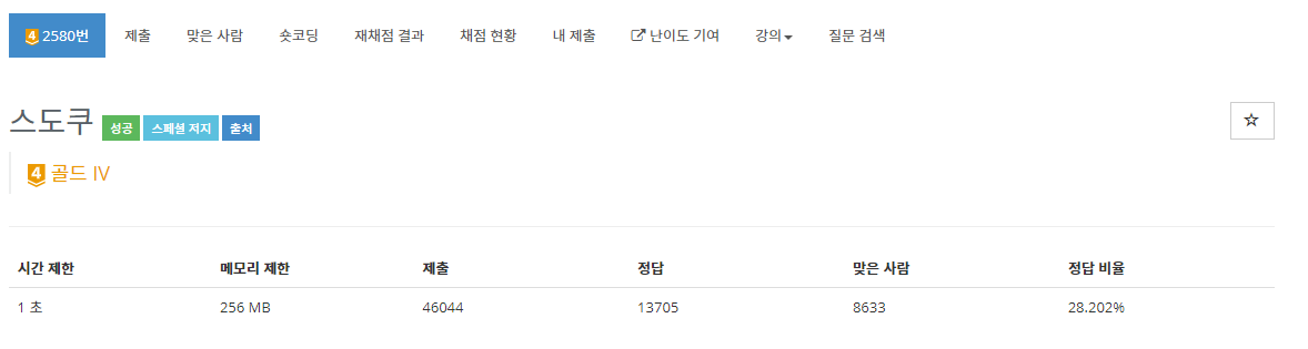이 처리를 안 해주게 된다면 만들 수 있는 스도쿠가 모두 출력되고 에러가 발생할 것이다. (이 처리를 안 해주면 모두 0으로만 입력값을 주었을 때 많은 스도쿠들이 출력된다..!)