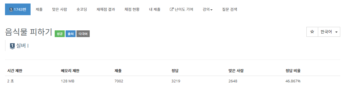 음식물의 좌표들을 저장한 후, 반복문을 돌면서 음식물을 발견한다.