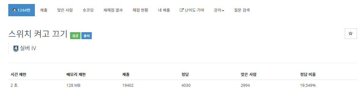 1244번: 스위치 켜고 끄기